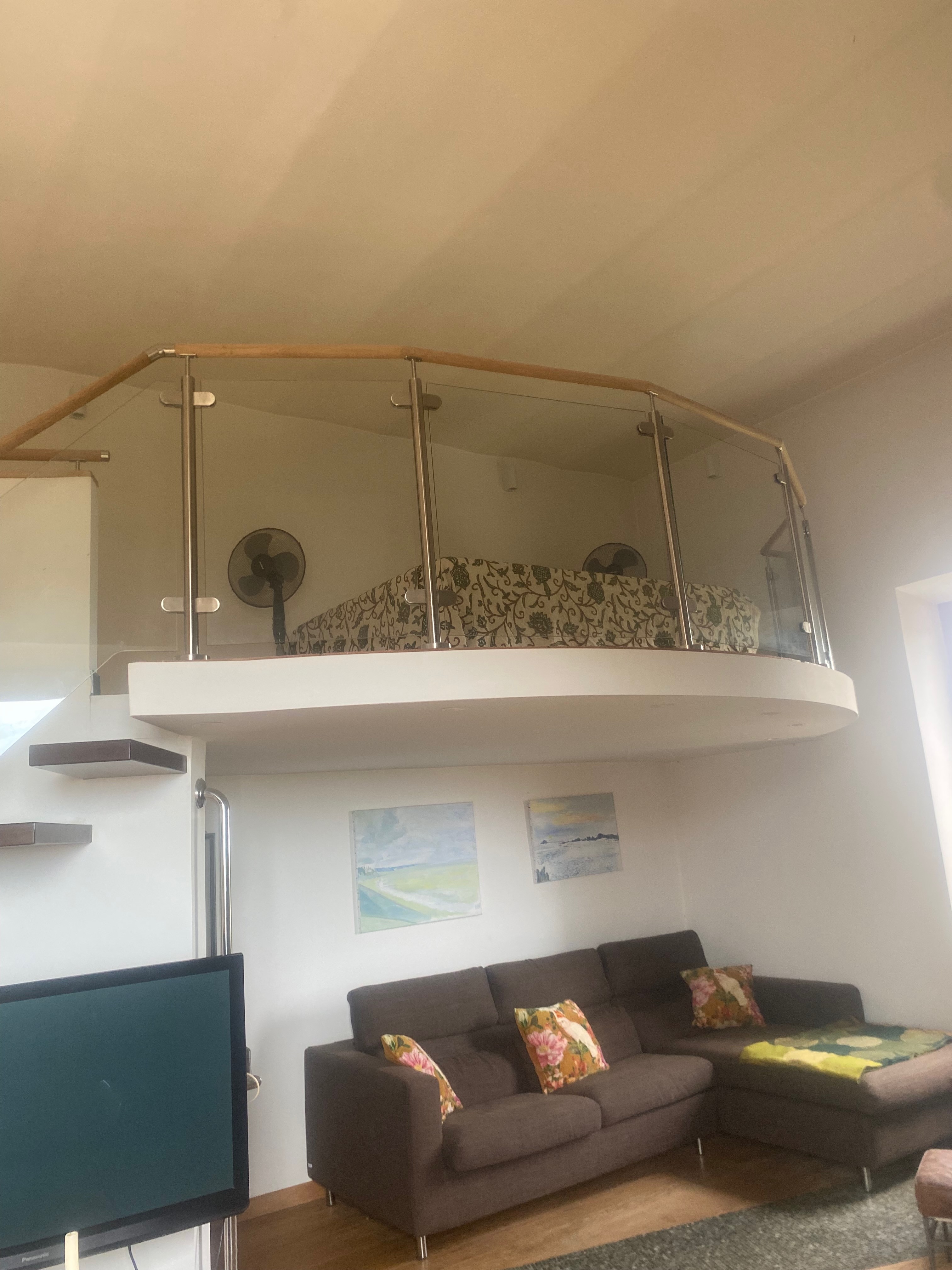 Fra balkongen ser du rett mot Middelhavet, og via trappehuset har du tilgang til en fantastisk takterrasse med solsenger og sitteplasser – et av de fineste stedene i hele huset.