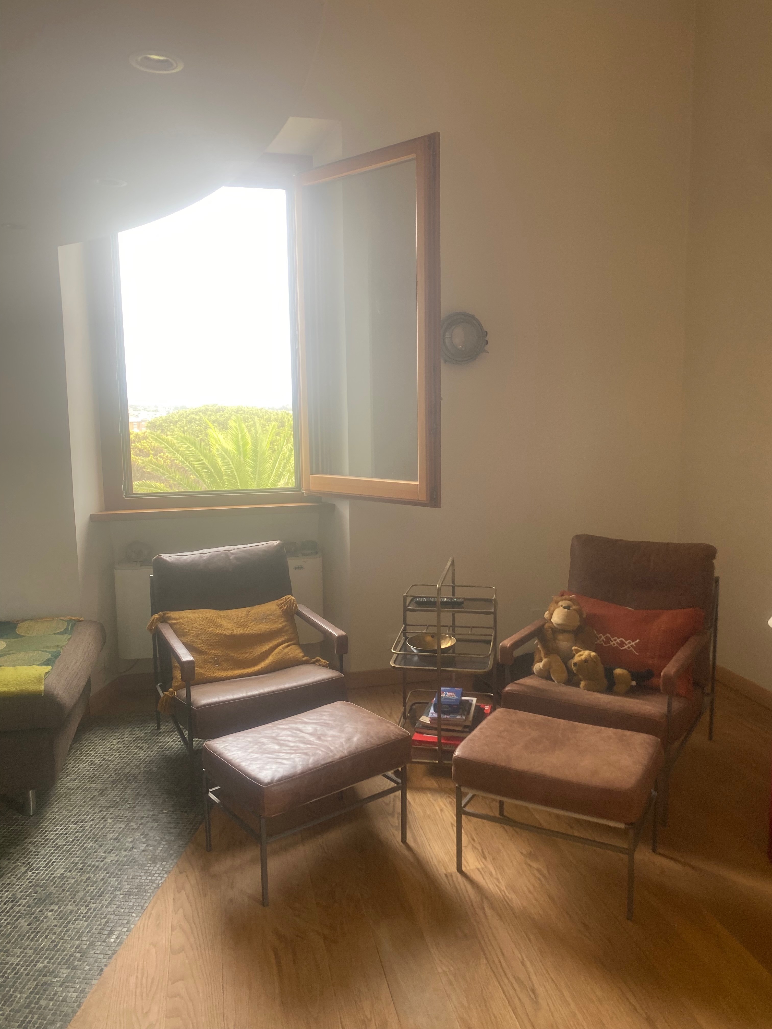 Leiligheten har fullt utstyrt kjøkken, sentralvarme og myggnetting i alle vinduer. Aircondition er under planlegging, men vifter har fungert fint på varme sommernetter. Den passer perfekt for to par, og har plass til over seks personer inkludert barn.
